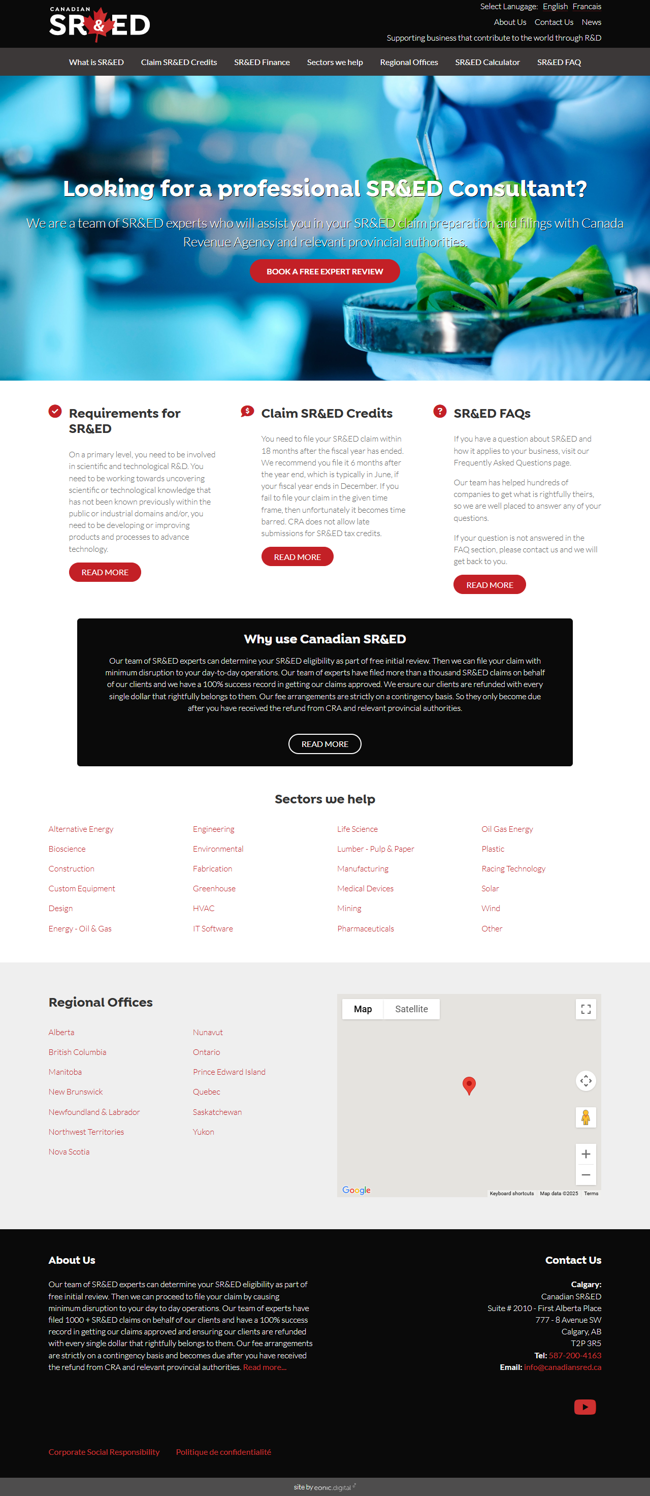 A highly committed team of professional SR&ED experts that provides comprehensive and tailored solutions to process SR&ED grants with Canada Revenue Agency (CRA) while maximizing the total refund. They have been serving clients for over 20 years now and are well versed in SR&ED rules across all industry sectors.